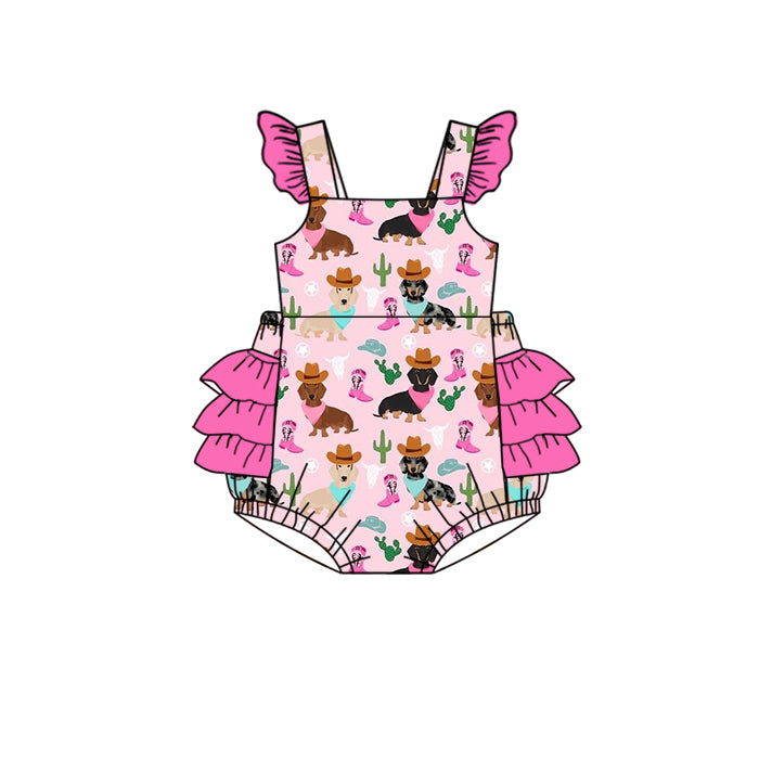 Baby Infant Girls Western Dogs Ruffles Buttons Rompers Preorder(moq 5)