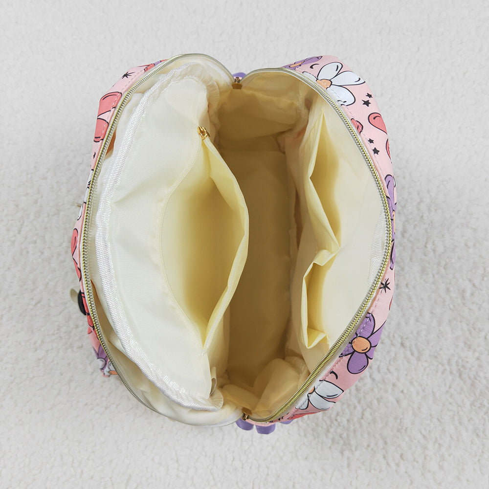 Baby Kids Girls Pink Flowers Backpack Zip Back Bags