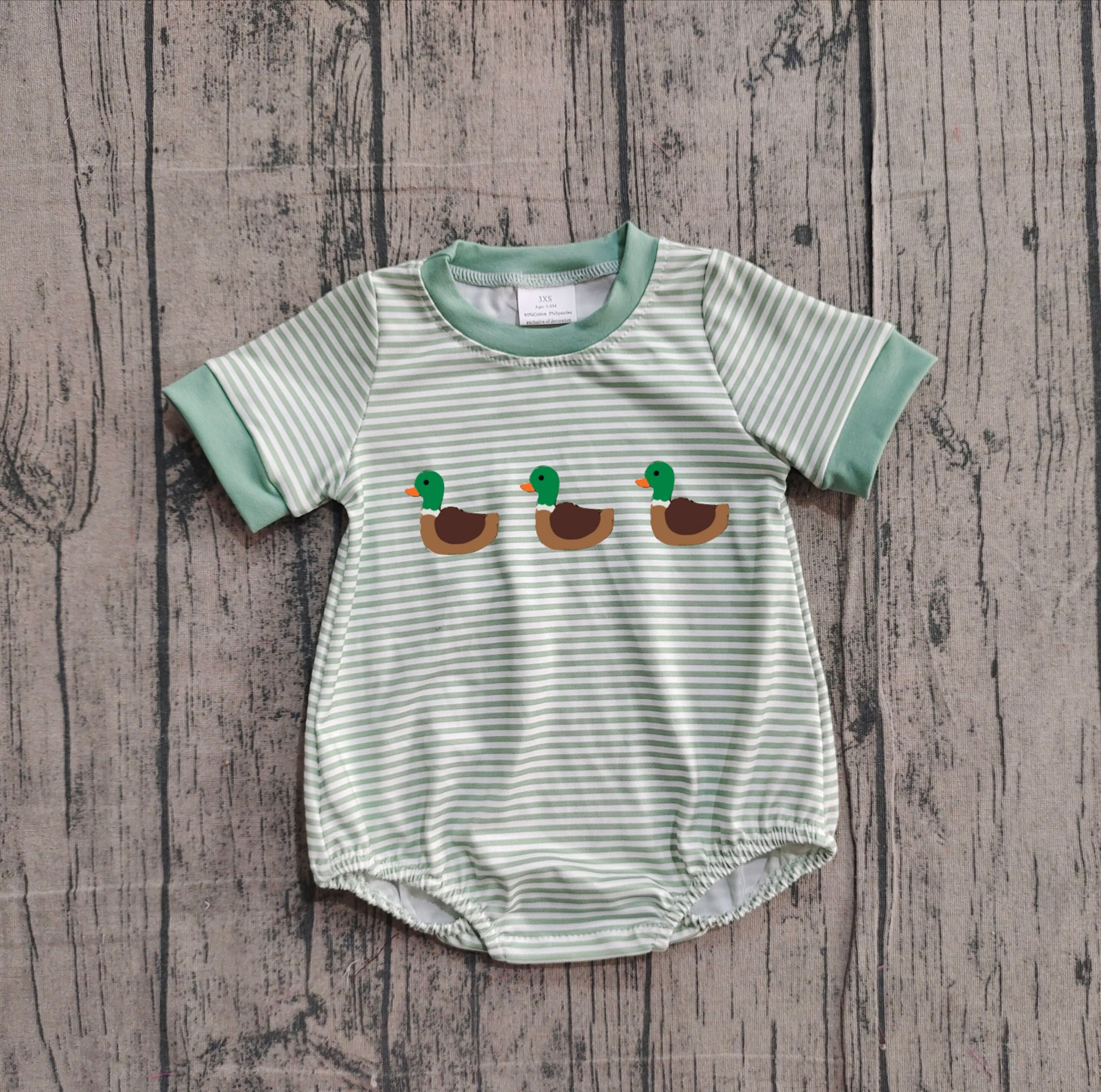 Embroidery Ducks Baby Boys Green Stripe Short Sleeve Hunting Rompers Preorder