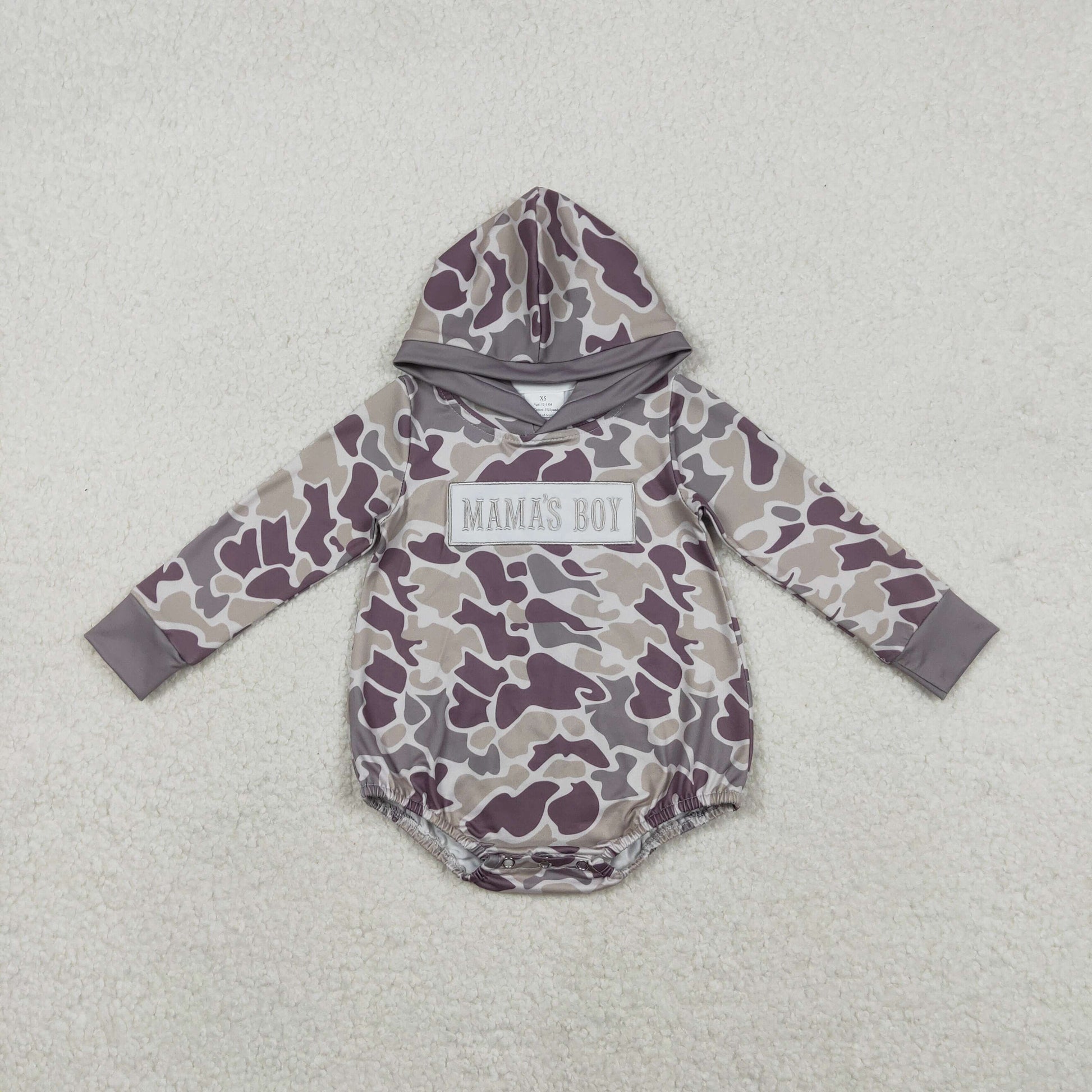 Embroidery Mama's Boy Baby Boys Grey Camo Hoodie Rompers