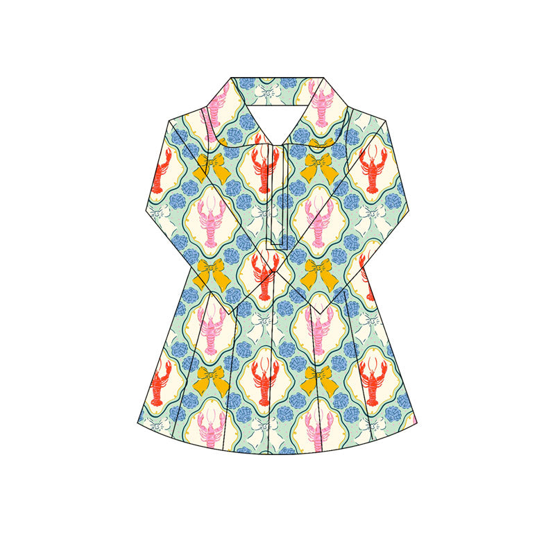 Baby Girls Long Sleeves Bows Crayfishes Plaid Zipper Knee Length Dresses Preorder