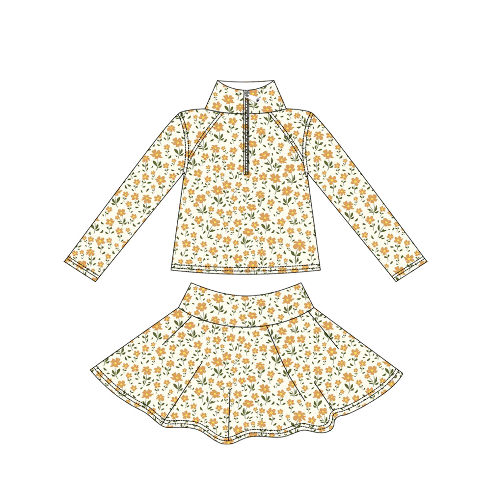 Baby Girls Yellow Flowers Yoga Zipper Pullovers Skorts Clothes Set Preorder