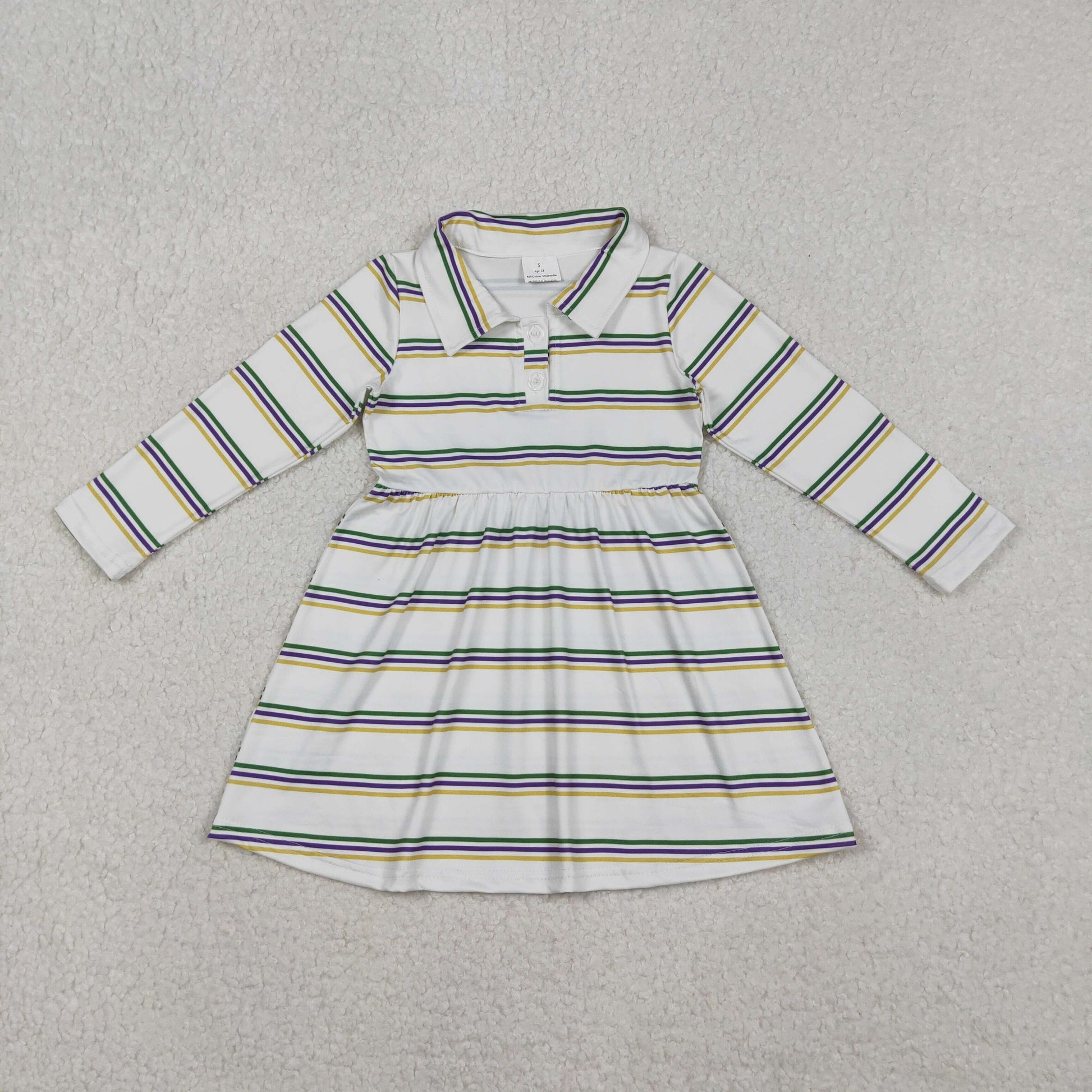 Baby Girls Mardigras Stripes Button Knee Length Dresses