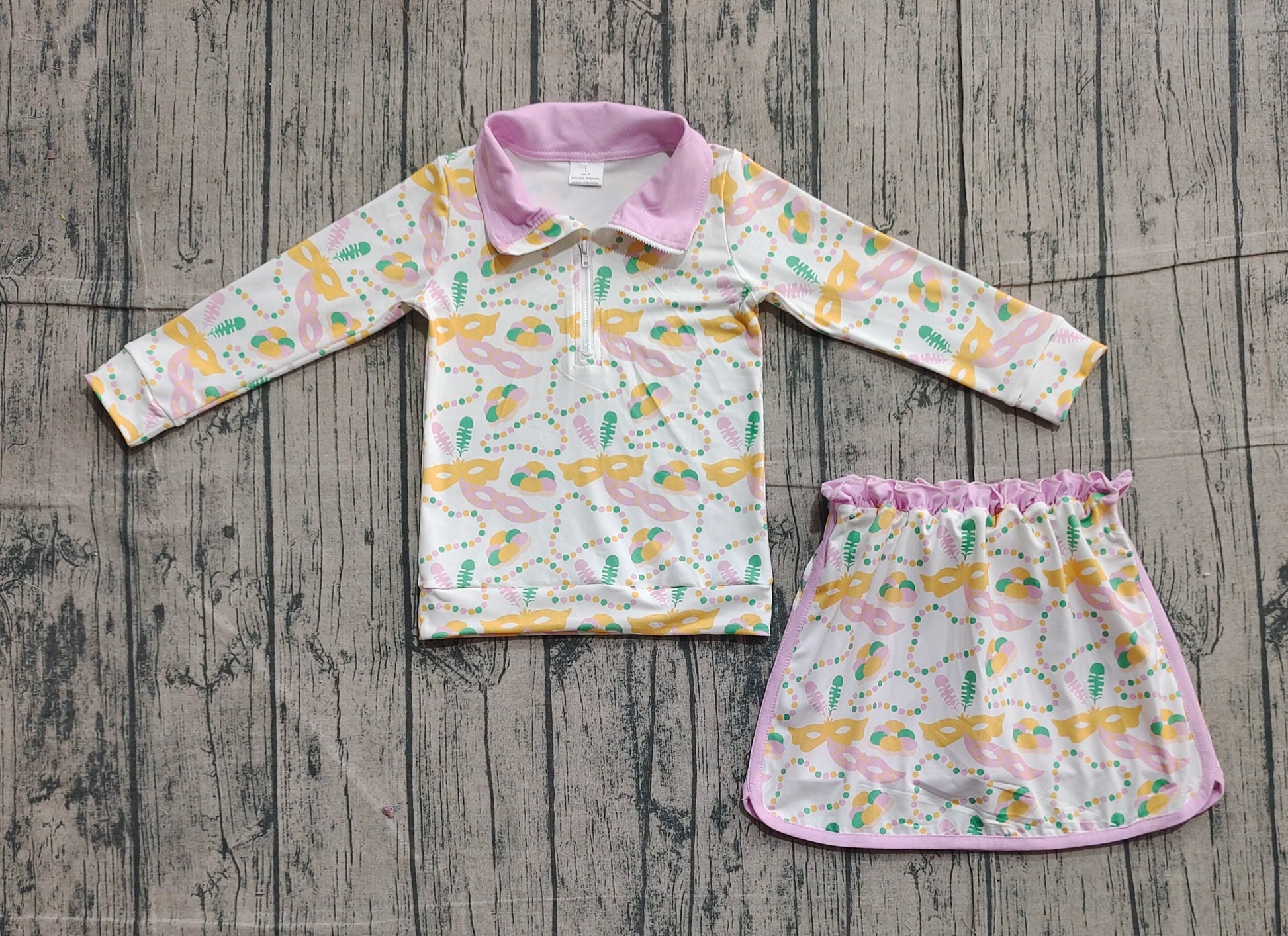 Baby Girls Donuts Masks Zipper Pullover Ruffle Skorts Mardigras Clothes Sets Preorder