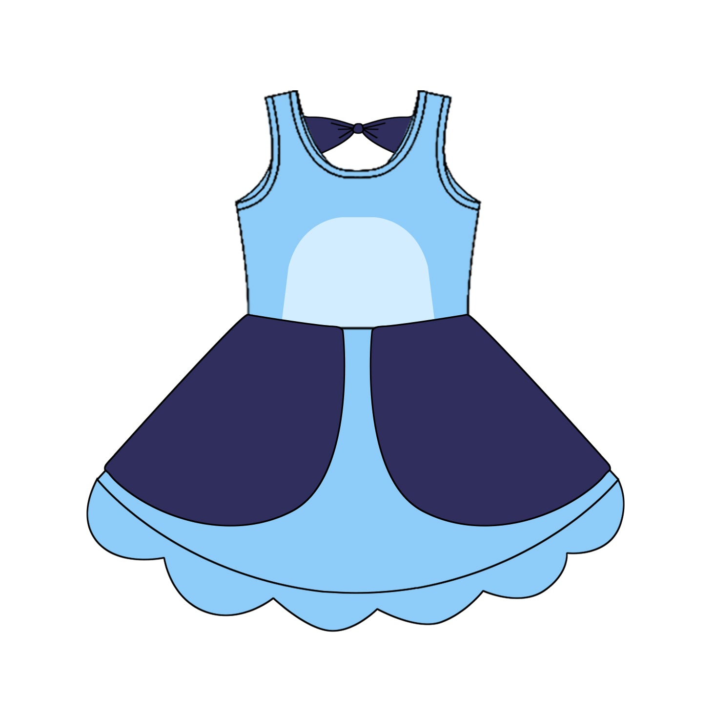 Baby Girls Sleeveless Blue Cartoon Dogs Knee Length Dress Preorder