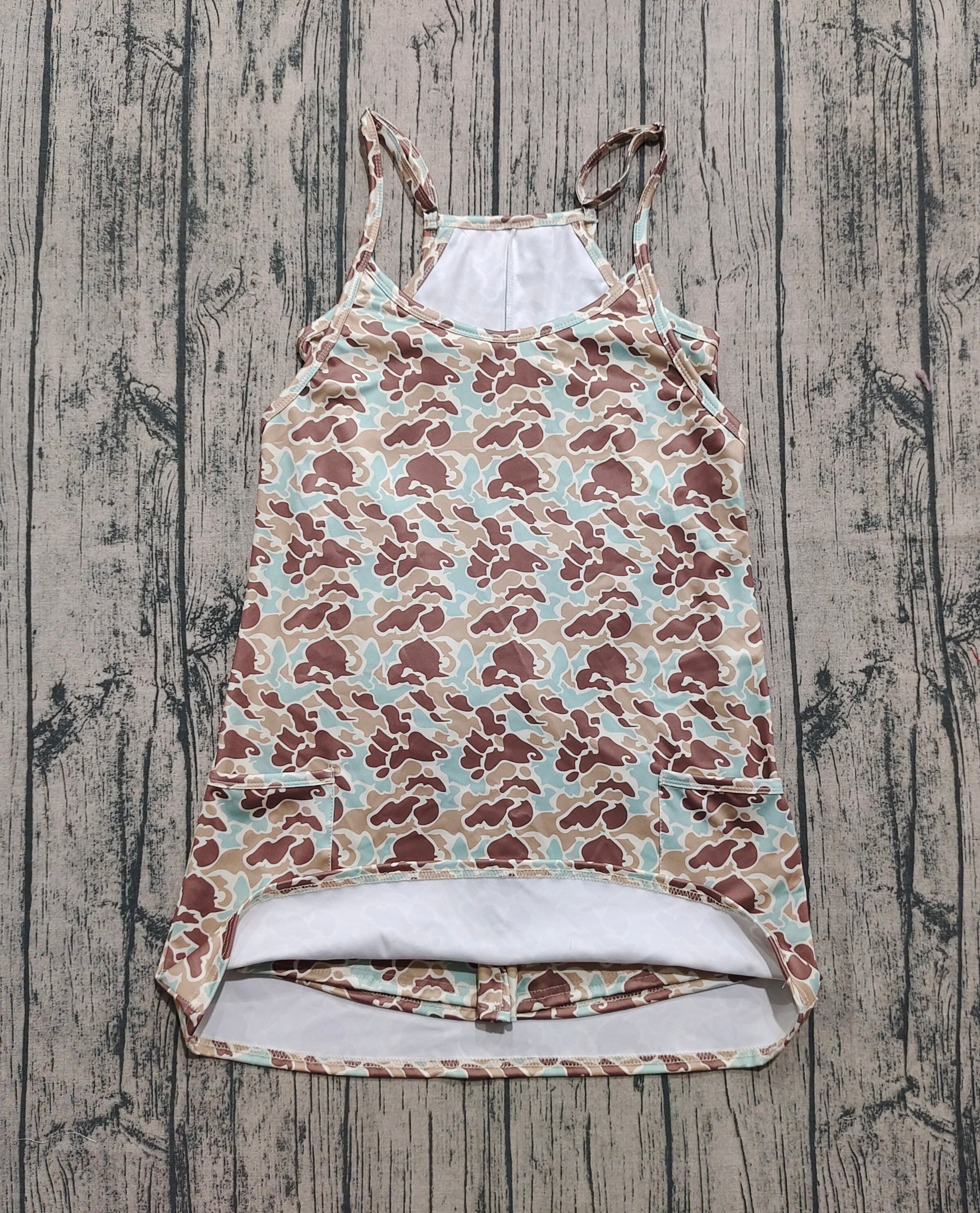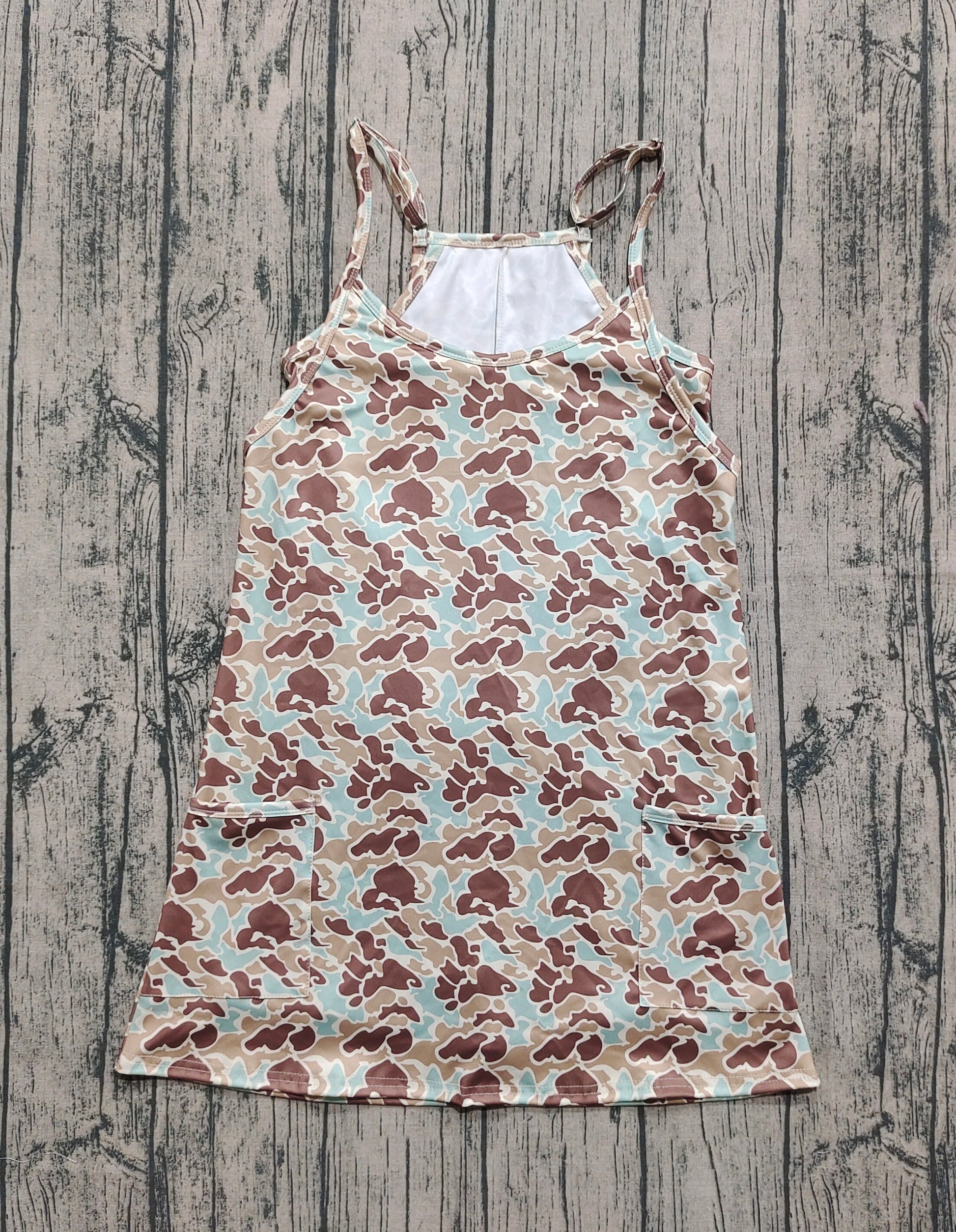 Adult Women Western Khaki Camo Strap Pockets Yoga Activity Shorts Dresses
