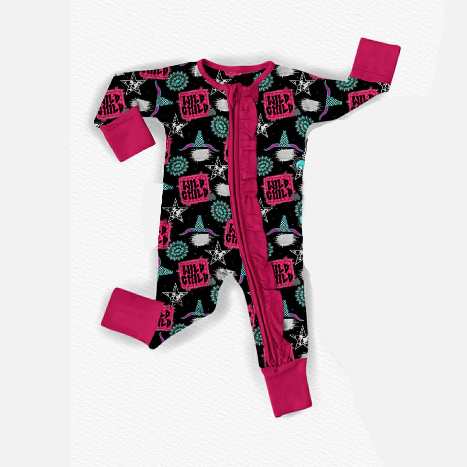 Baby Girls Wild Child Turquoises Western Two Way Ruffle Zip Convertible Rompers Preorder