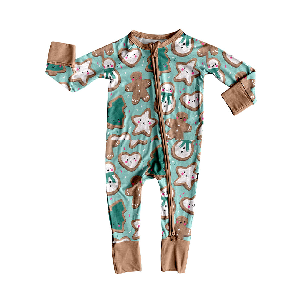 Preorder (moq 20)Baby Boys Bamboo Gingerbread Snowmen Christmas Zippy Footie Rompers