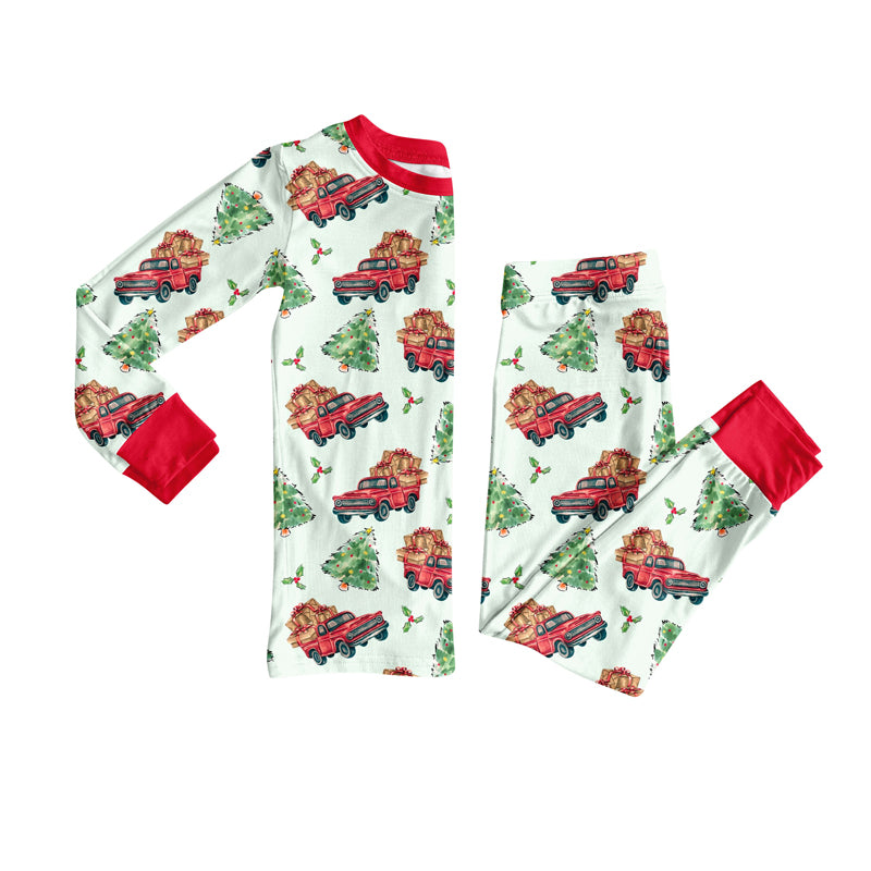 Preorder (moq 20)Baby Boys Bamboo Trees Trucks Holly Christmas Pajamas Sets