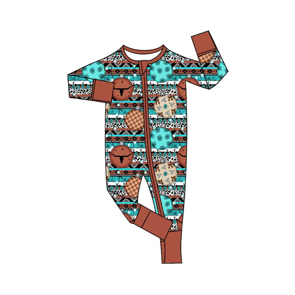 Preorder (moq 20)Baby Boys Bamboo Western Cow Disco Zippy Footie Rompers