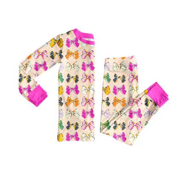 Preorder (moq 20)Baby Girls Bamboo Colorful Bows Pajamas Sets