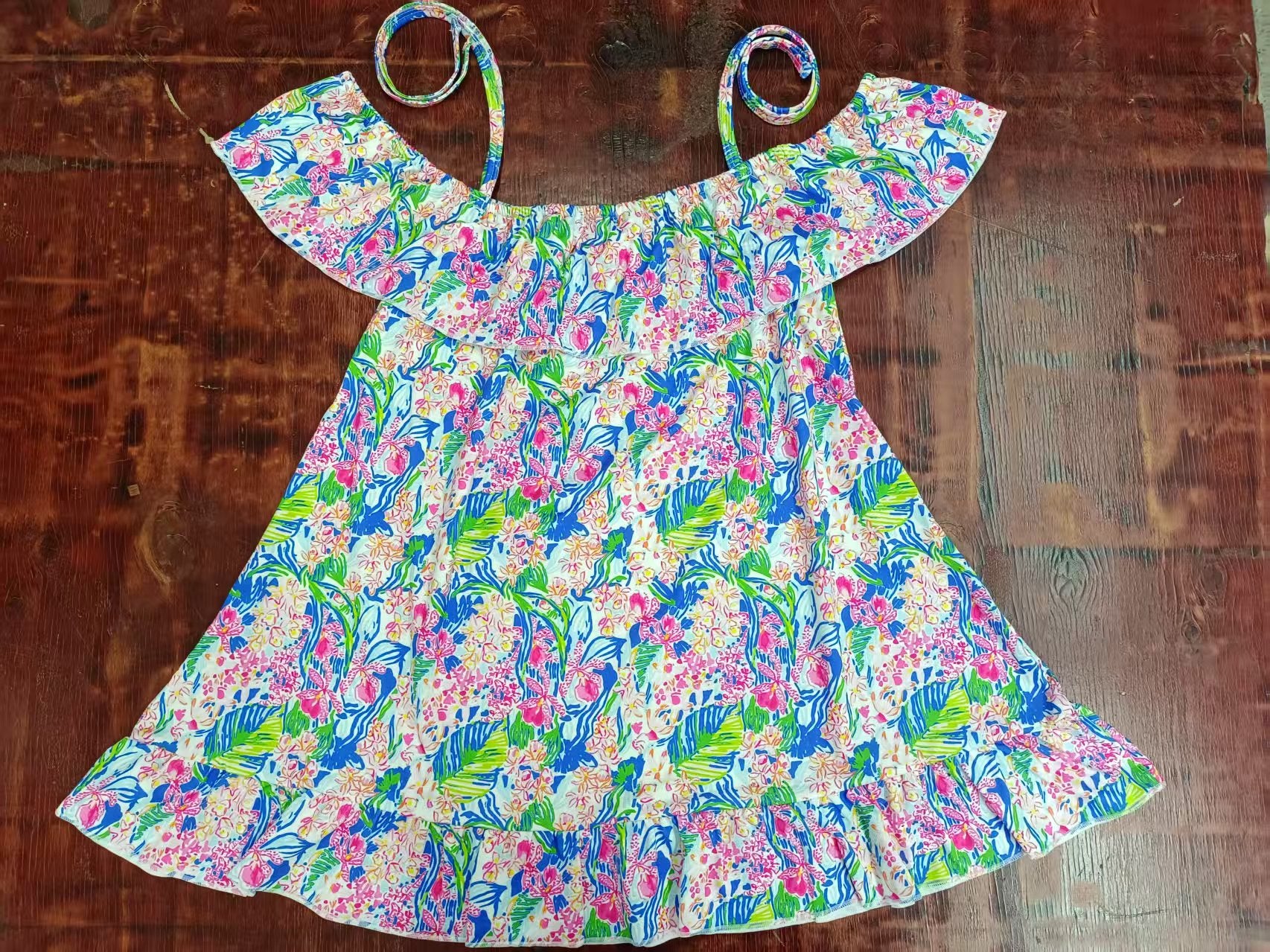 Preorder moq 5 Adult Women Strap Watercolor Floral Ruffle Straight Shoulder Shirts Top