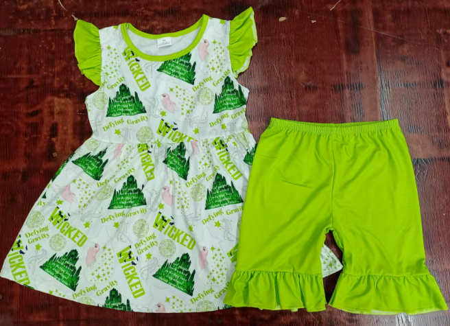 Preorder moq 5 Baby Girls Aqua Flutter Sleeves Wicked Castle Tunic Ruffle Short Sets
