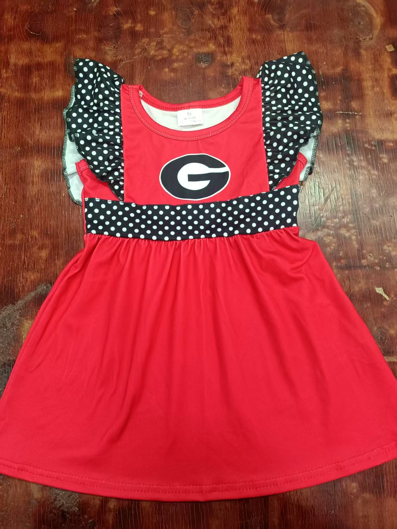Preorder moq 5 Baby Girls Black Polka Dots Flutter Sleeves G Knee Length Dresses