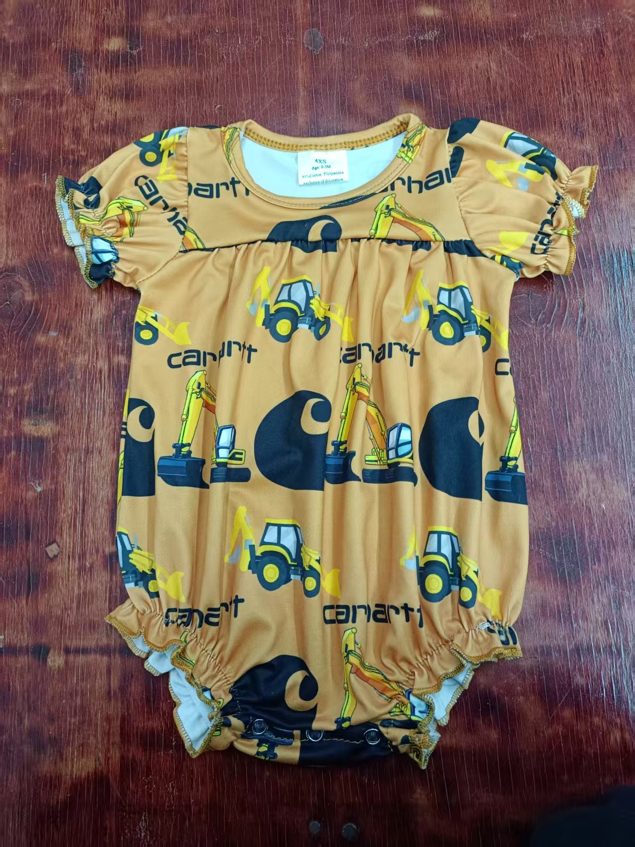 Preorder moq 5 Baby Girls Khaki Short Ruffle Sleeves Carartt Excavators Ruffle Rompers