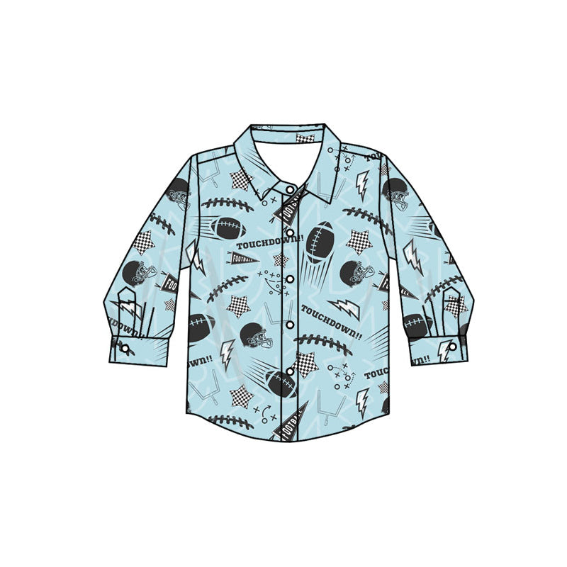 Preorder (moq 5)Baby Boys Blue Footballs Stars Button Team Shirts Top