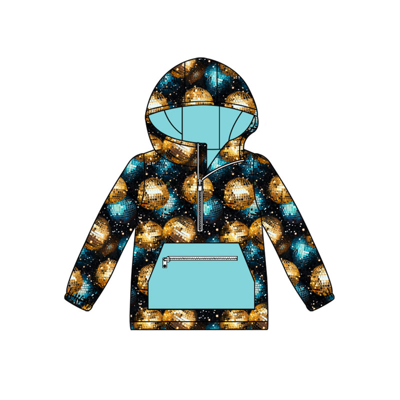 Preorder (moq 5)Baby Boys Gold Balls Happy New Year Zipper Pocket Ruffle Hooded Tops