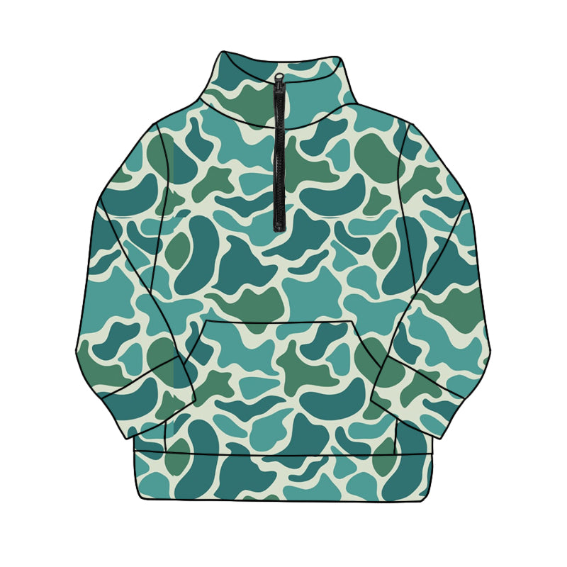 Preorder (moq 5)Baby Boys Green Camo Pocket Zipper Pullovers Top