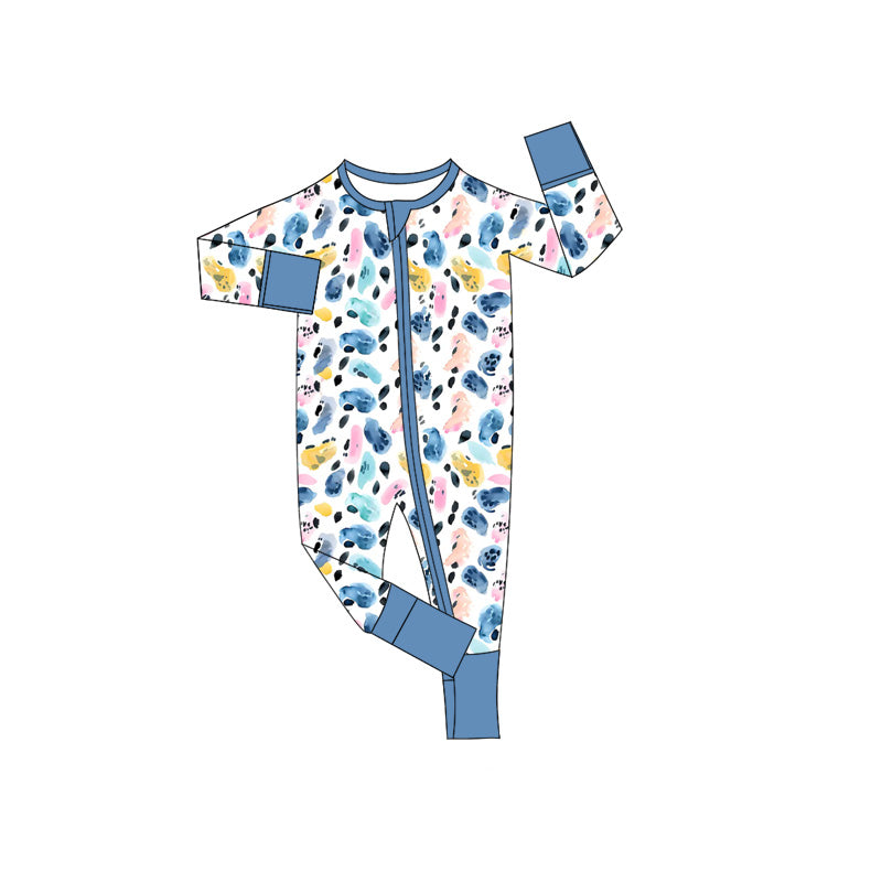 Preorder (moq 5)Baby Boys Long Sleeves Blue Leopard Zipper Rompers