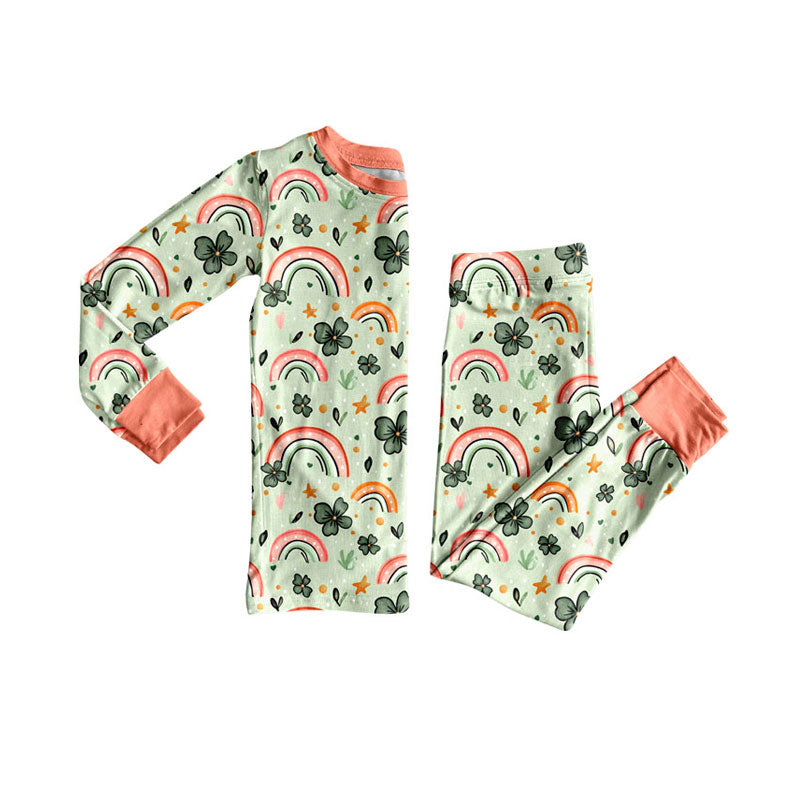 Preorder (moq 5)Baby Girls Clovers Rainbows Top Pants St Patrick Pajamas Sets
