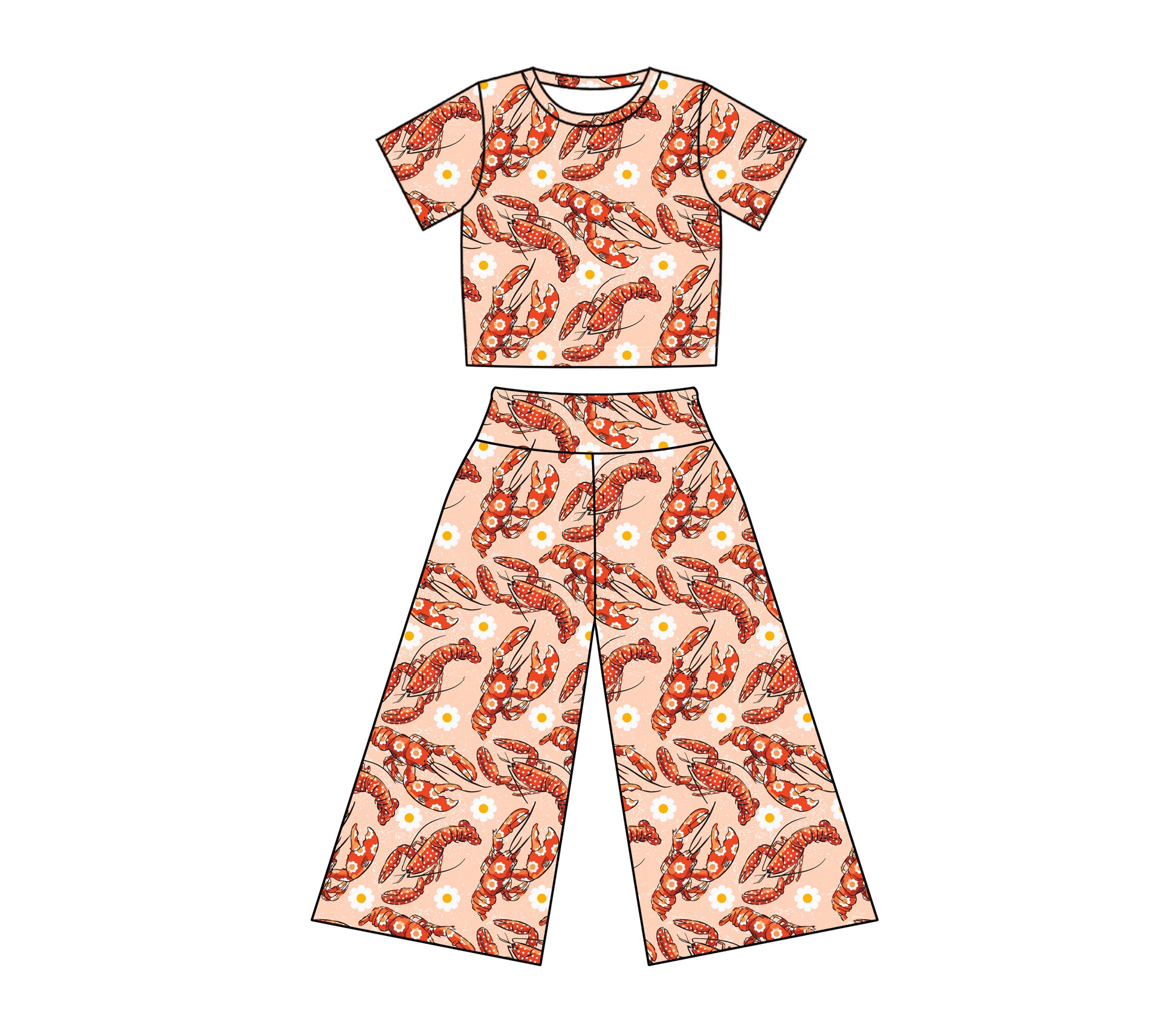 Preorder (moq 5)Baby Girls Crawfish Flowers Top Bell Bottom Pants Clothes Sets