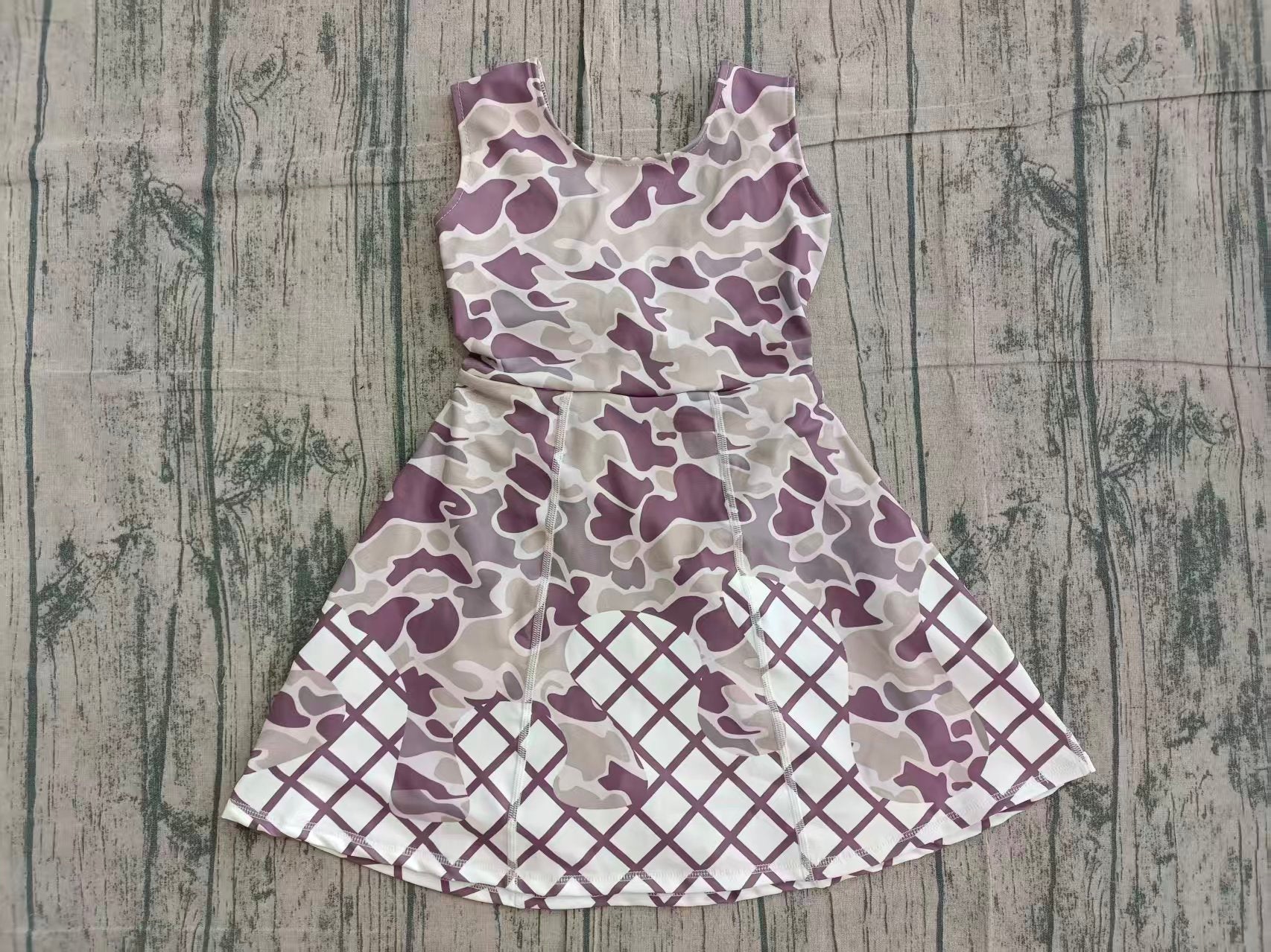Baby Girls Dark Grey Camo Drip Team Shorts Yoga Knee Length Dresses