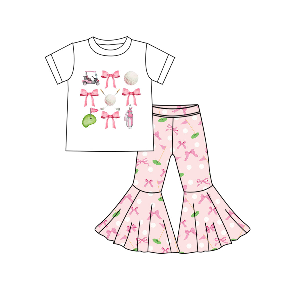Preorder (moq 5)Baby Girls Foftball Bows Top Bell Bottom Pant Sets