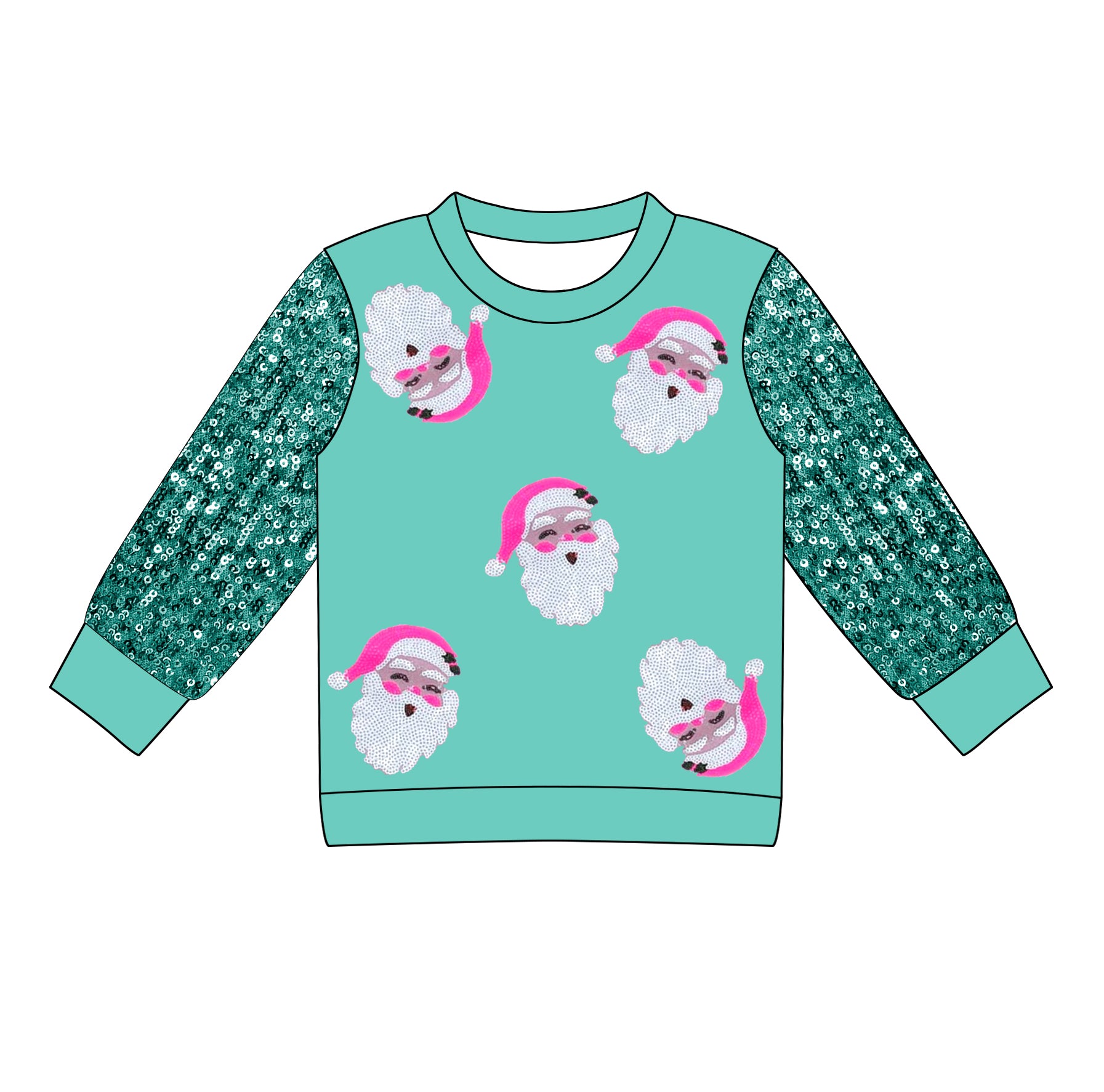 Preorder (moq 5)Baby Girls Green Long Sleeves Santa Tee Shirts Top