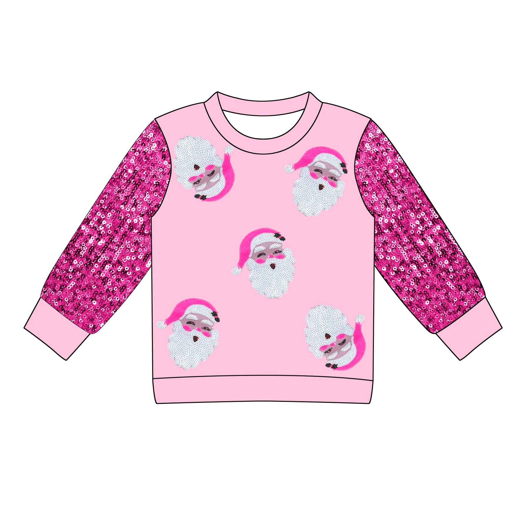 Preorder (moq 5)Baby Girls Hot Pink Long Sleeves Santa Tee Shirts Top