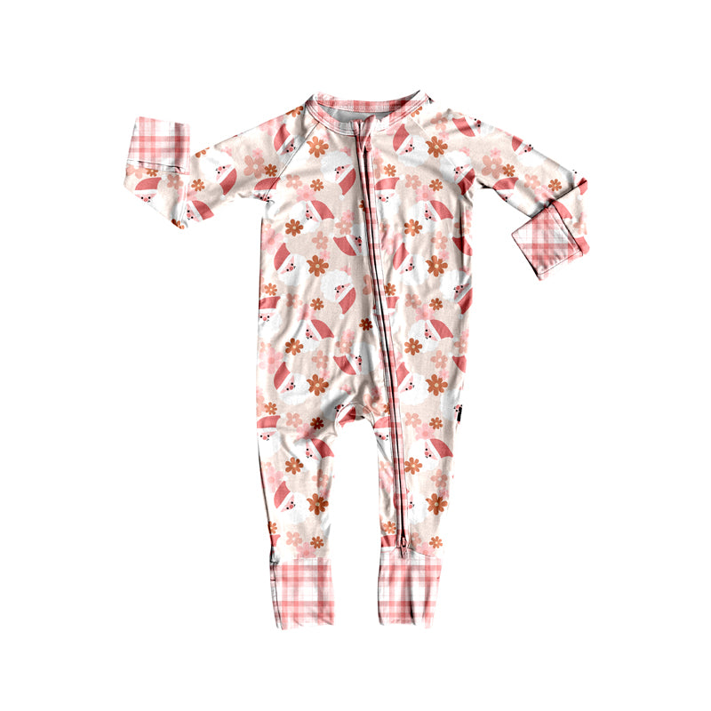 Preorder (moq 5)Baby Girls Long Sleeves Peach Santa Flowers Zipper Rompers