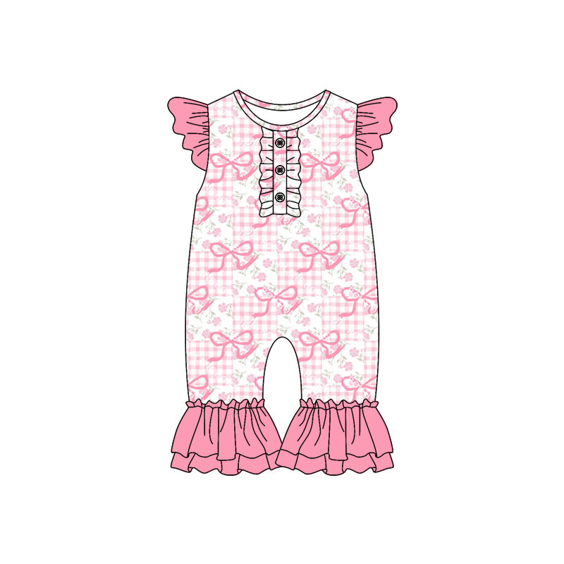 Preorder (moq 5)Baby Girls Pink Bows Flowers Flutter Sleeve Rompers