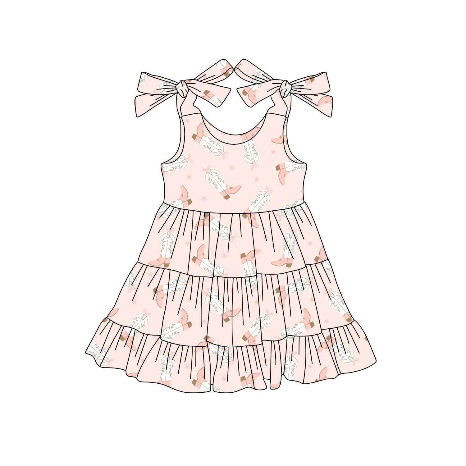 Preorder (moq 5)Baby Girls Pink Bows Strap Boots Stars Knee Length Dress