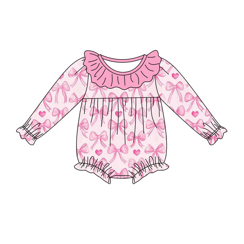 Preorder (moq 5)Baby Girls Pink Hearts Bows Valentine Ruffle Rompers