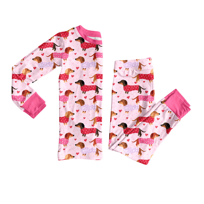 Preorder (moq 5)Baby Girls Pink Hearts Dogs Top Pants Valentine Pajamas Sets
