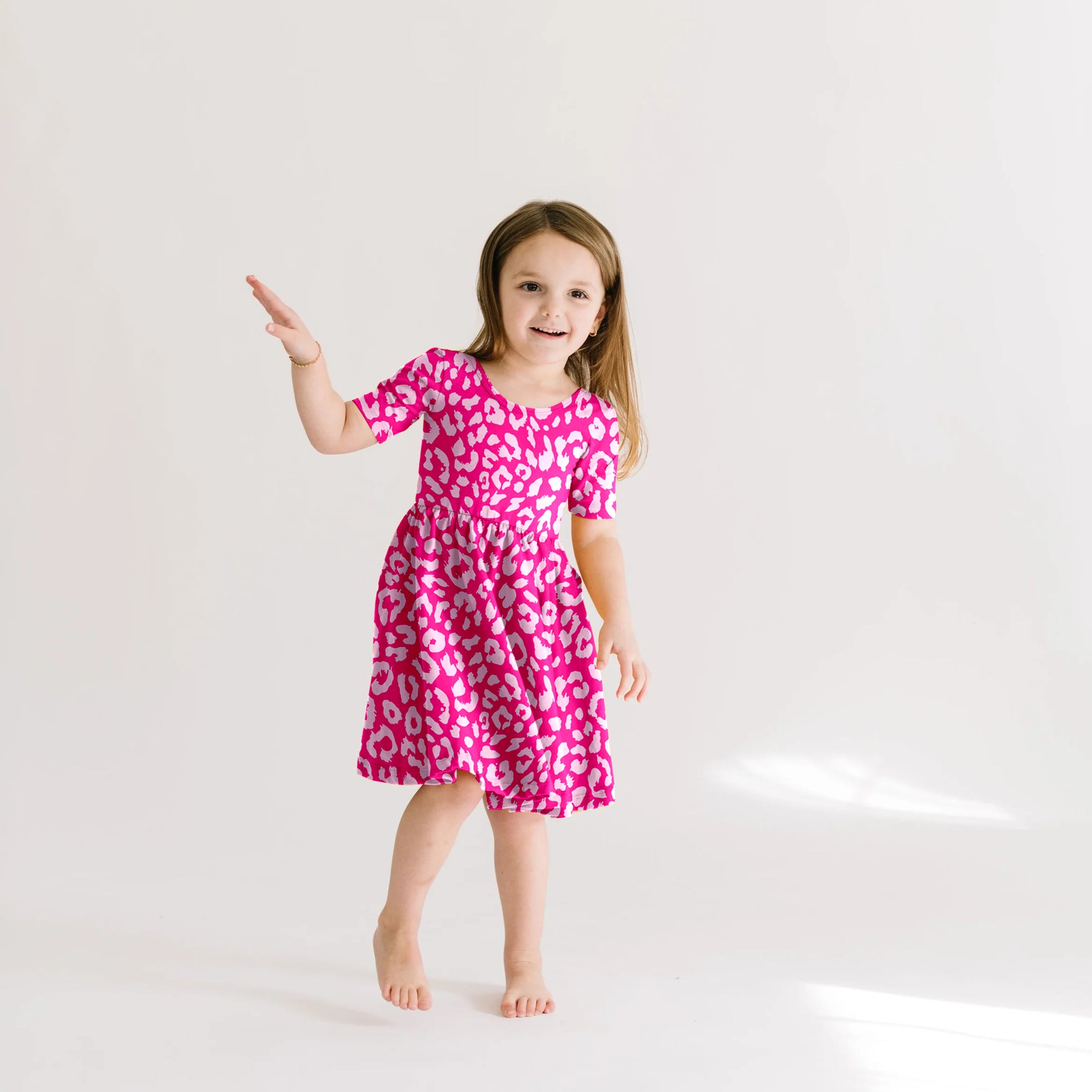Preorder (moq 5)Baby Girls Pink Leopard Knee Length Dresses