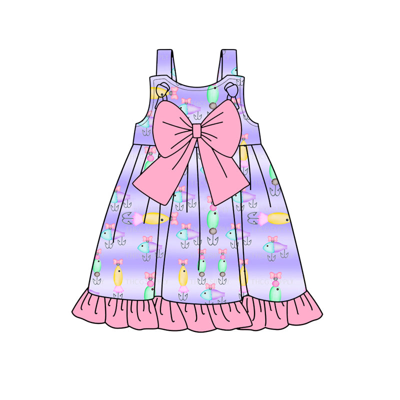Preorder (moq 5)Baby Girls Purple Fishing Bows Knee Length Dresses