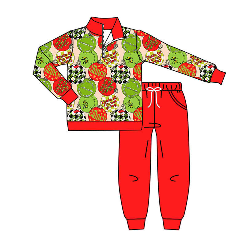 Preorder (moq 5)Baby Boys Red Green Lights Zipper Pullover Pockets Jogger Christmas Clothes Sets