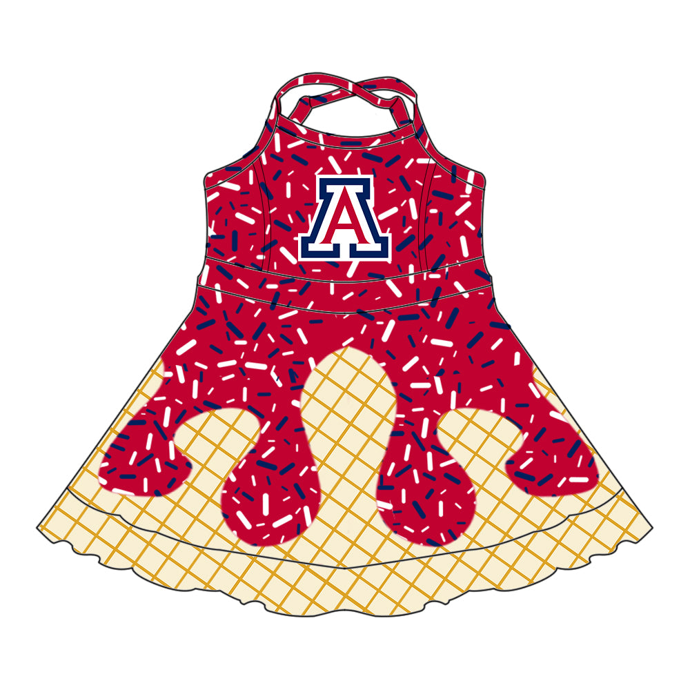 Preorder (moq 5)Baby Girls Red Strap A Drip Shorts Ruffle Team Knee Length Dresses