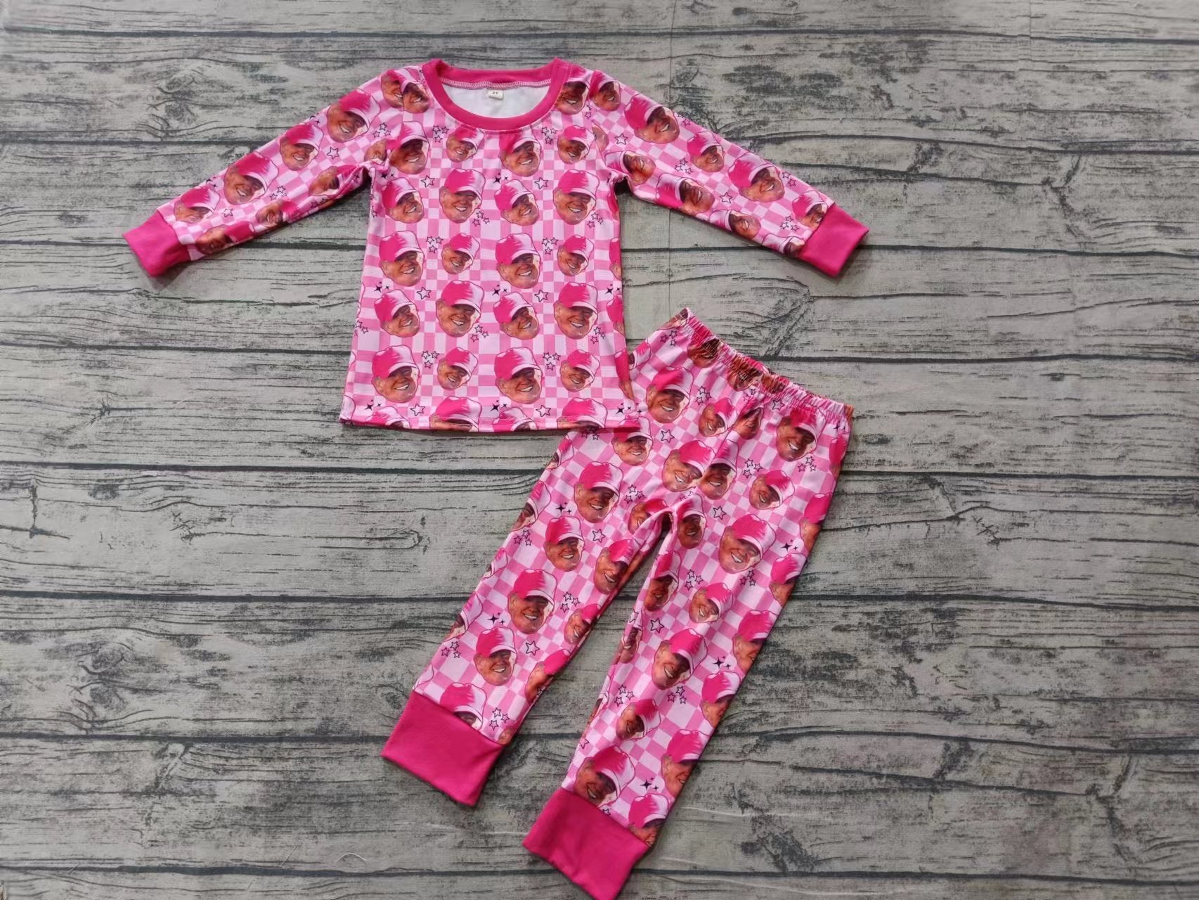Preorder (moq 5)Baby Girls Trumps Pink Checkered Top Pants Pajamas Clothes Sets
