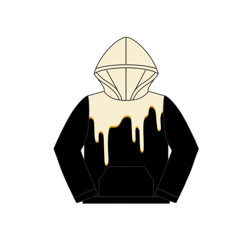 Preorder (moq 5)Baby Girls White Drips Black Team Hooded Tops