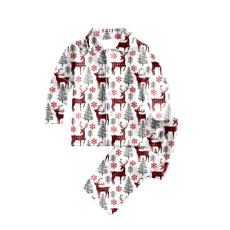 Preorder (moq 5)Baby Kids Christmas Reindeer Button Top Pant Pajamas Sets