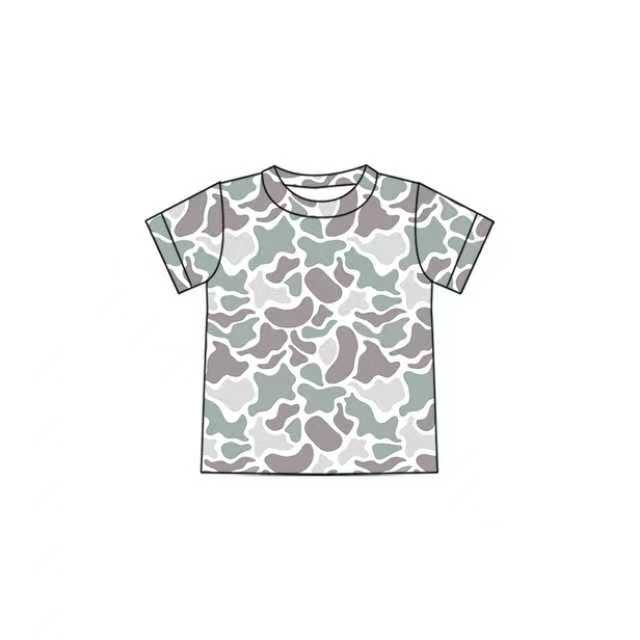 Preorder(moq 5) Baby Boys Short Sleeve Gray Camo Tee Shirts Tops