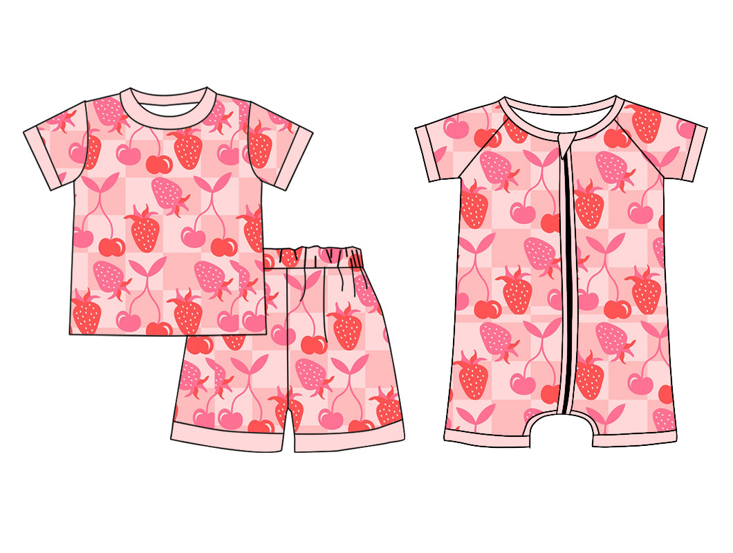 Preorder(moq 5 each)Sibling Baby Girls Strawberry Cherry Top Shorts Pajamas Rompers Clothes Sets