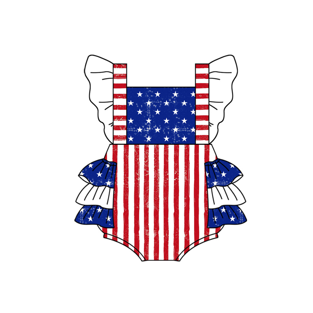 Preorder(moq 5)Baby Infant Girls 4th Of July Stripes Bubble Rompers