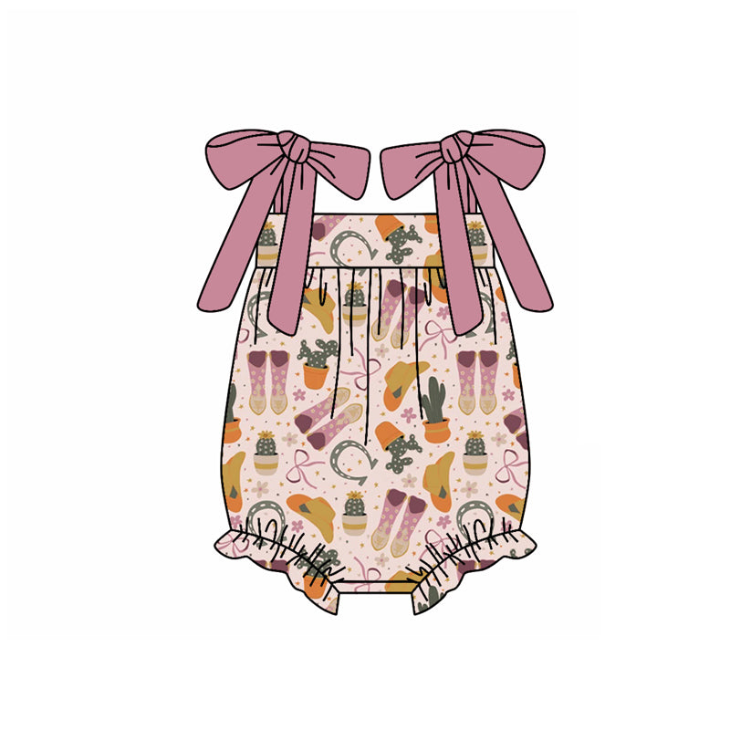 Preorder(moq 5)Baby Infant Girls Hot Pink Strap Cactus Boots Summer Rompers