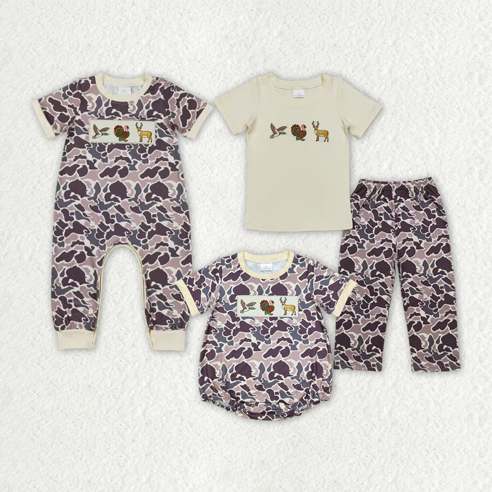 Sibling Baby Boys Duck Turkey Deer Camo Rompers Clothes Sets