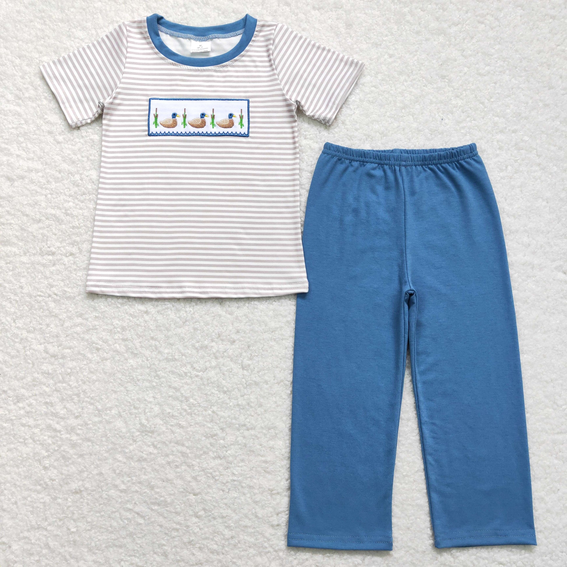 Sibling Baby Boys Short Sleeve Embroidery Ducks Top Camo Pants Hunting Clothes Sets