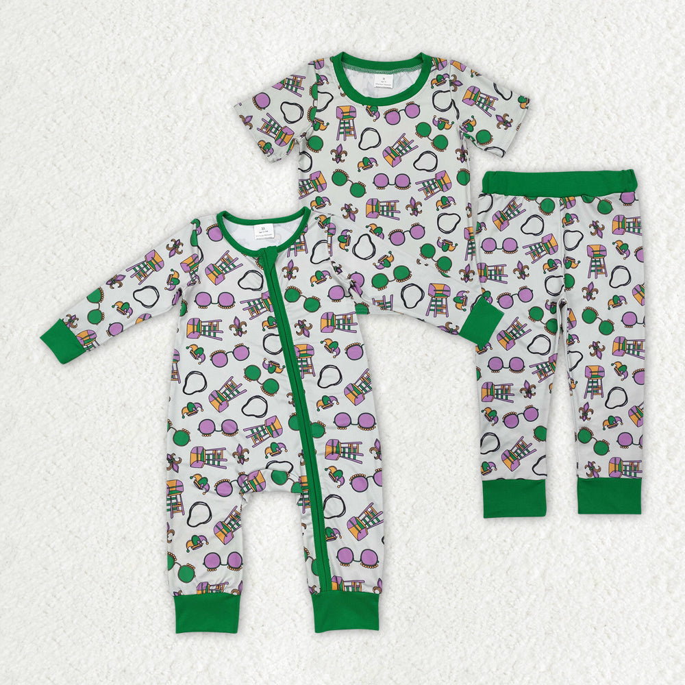 Sibling Baby Boys Green Mardi Gras Rompers Pajamas