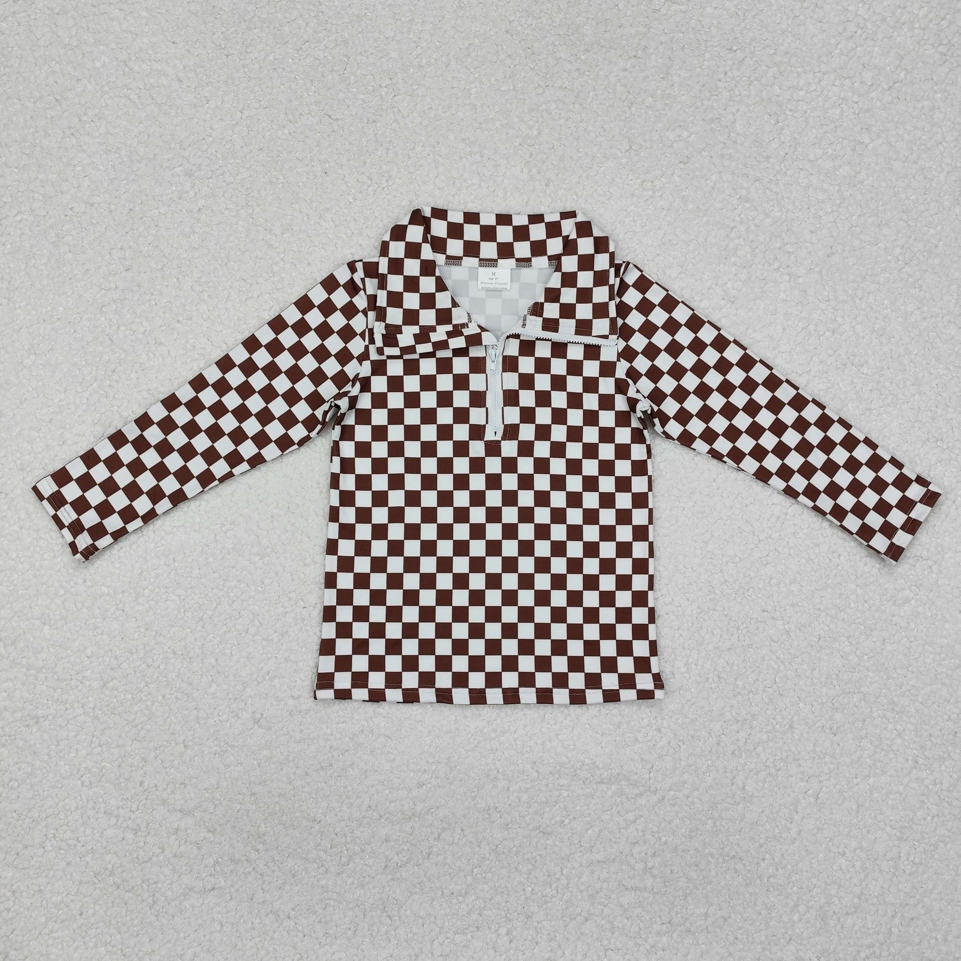 Sibling Baby Girls Boutique Flowers Checked Long Sleeves Half Zipper Pullovers Tops