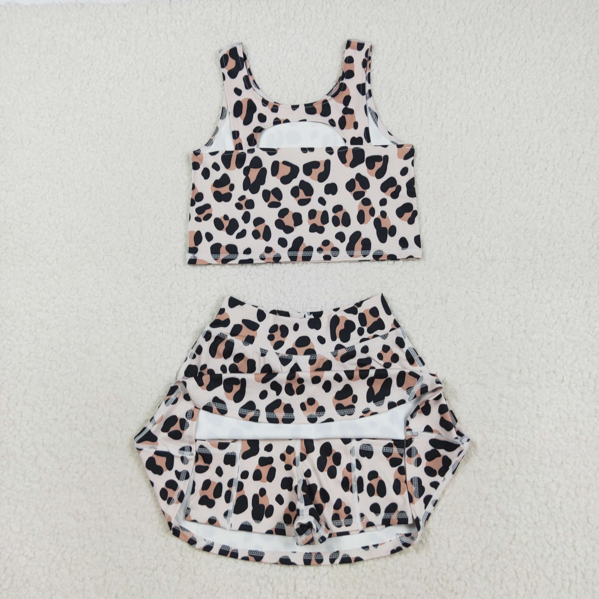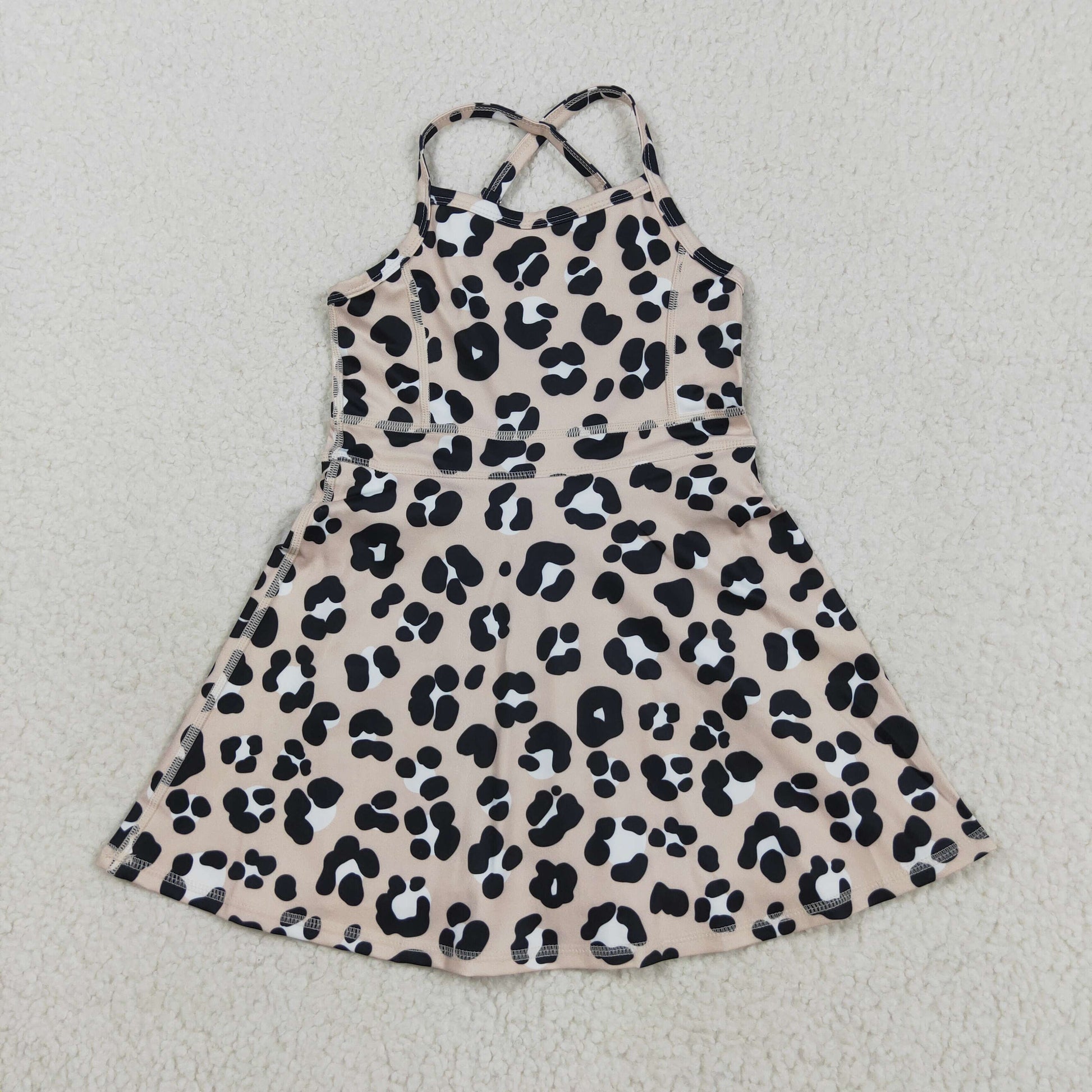 Sibling Baby Girls Brown Leopard Shorts Yoga Active Knee Length Dresses Set